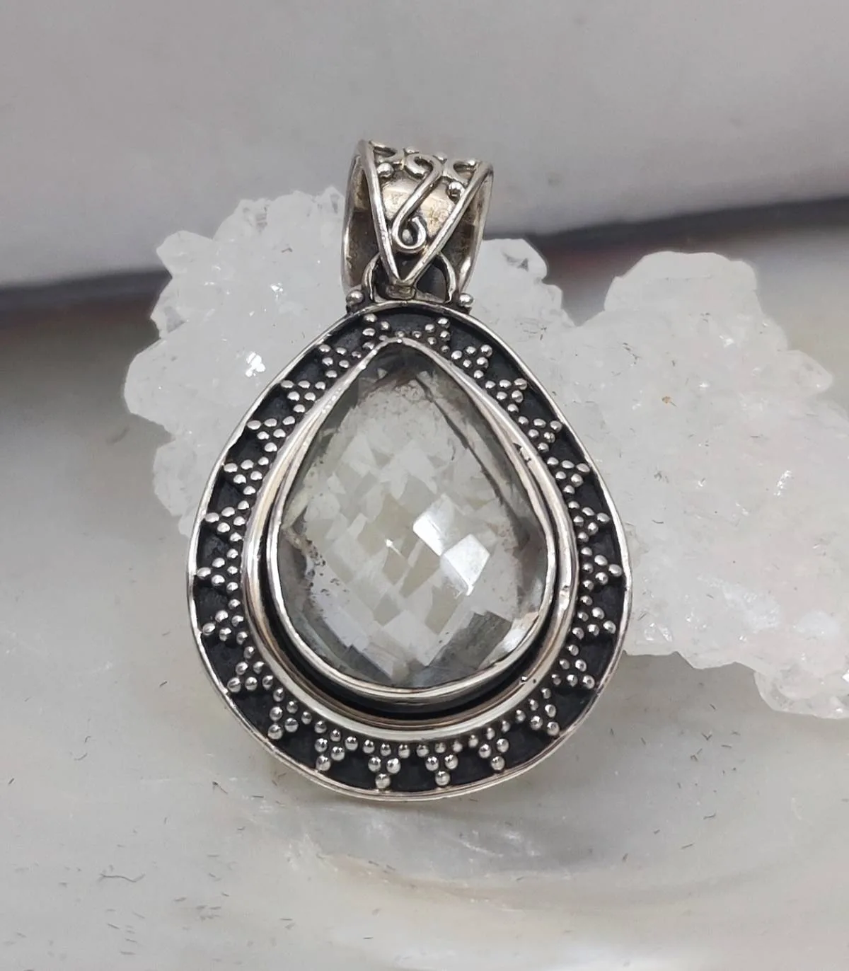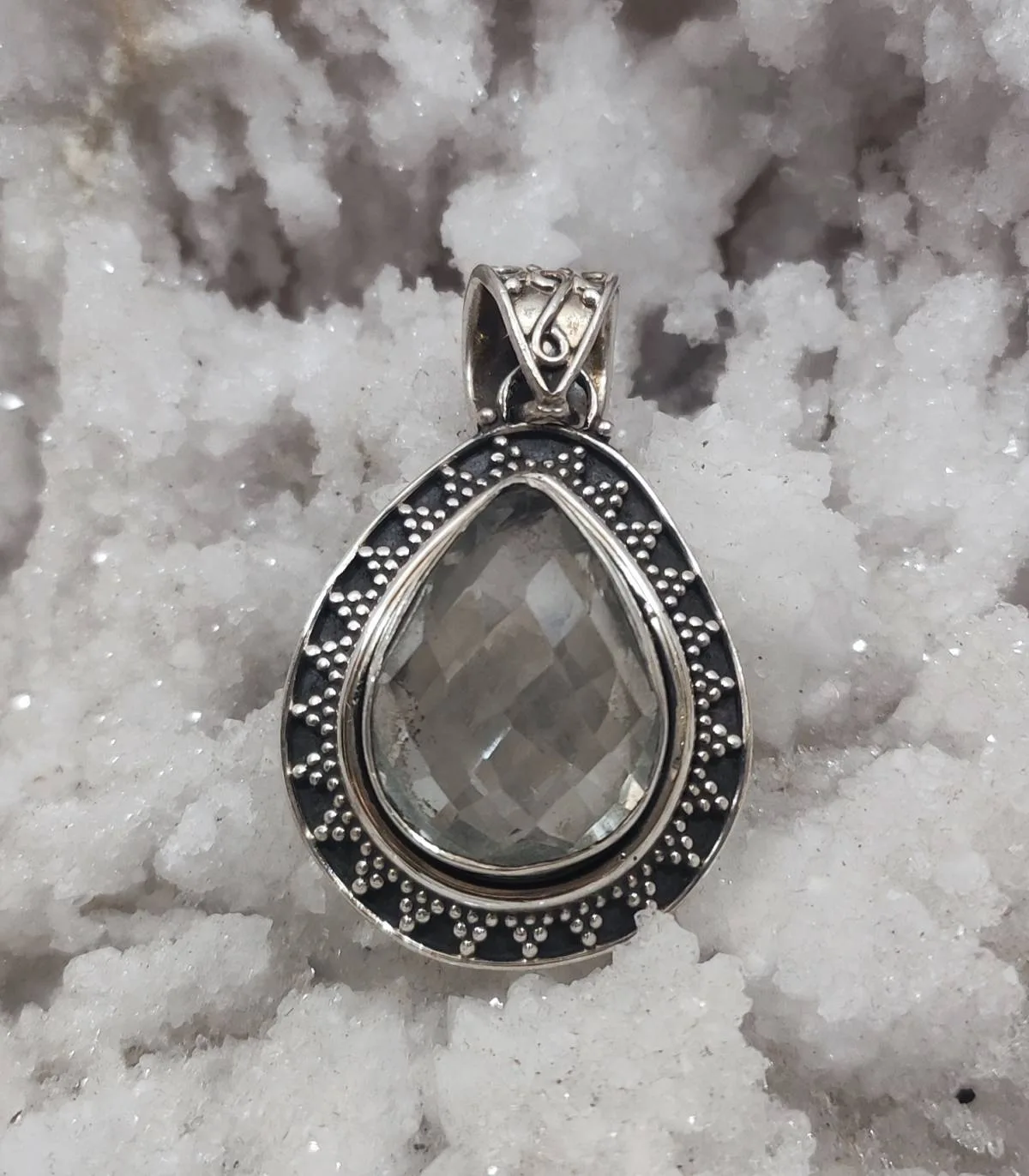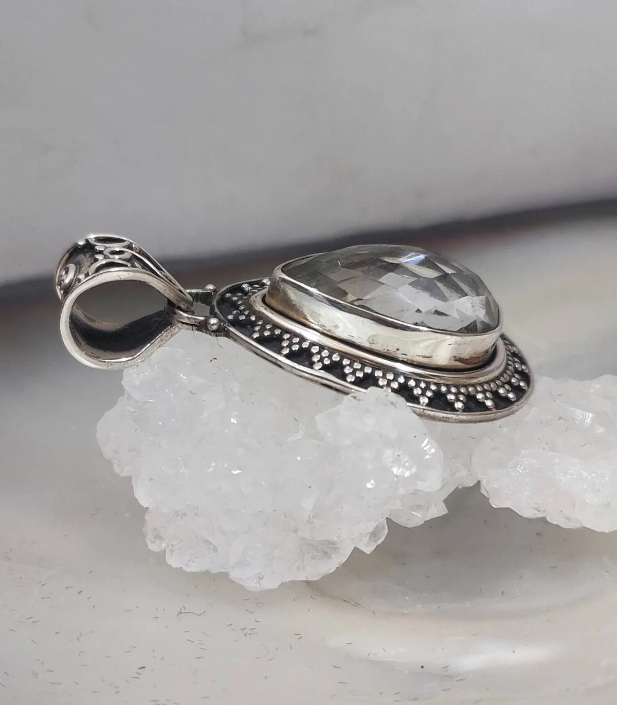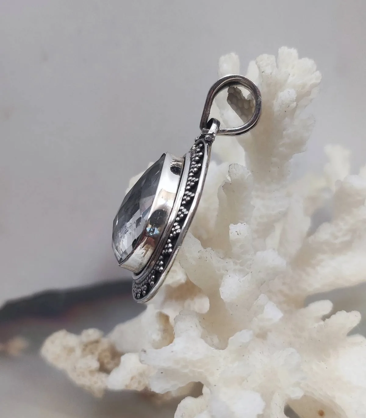 Pendentif ethnique composé d'argent et d'une pierre naturelle de forme ovale à dominance jaune et noire appelée jaspe bourdon ou...