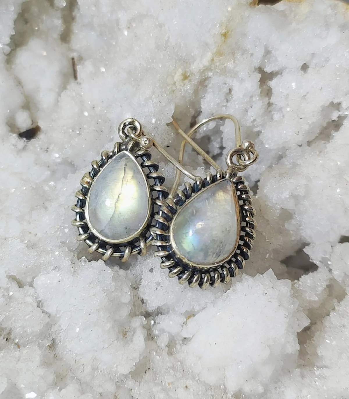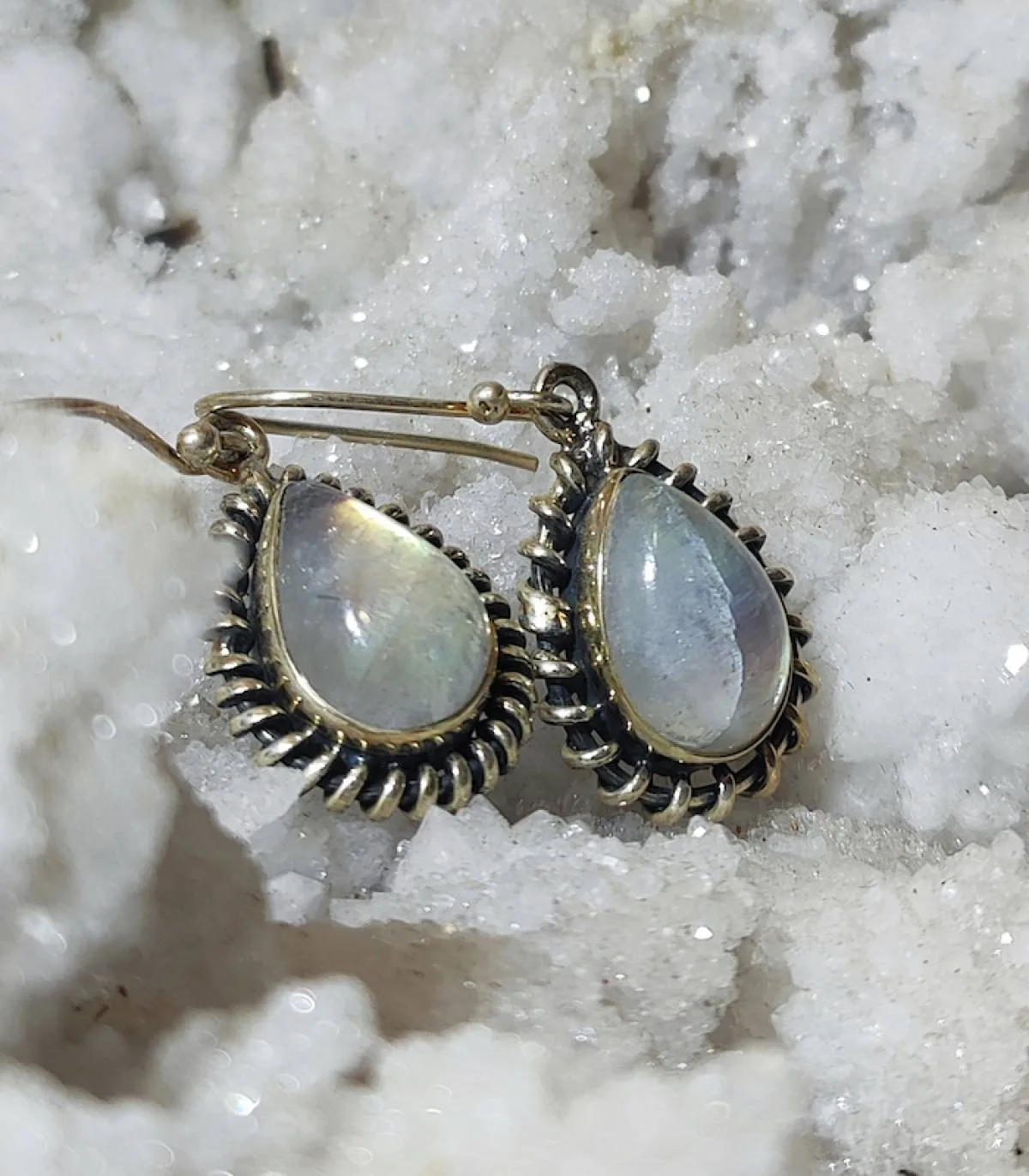 Boucles d'oreilles argent pierres naturelles labradorite cornaline